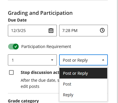 The participation requirement feature will allow you to fine-tune the parameters of the discussion. Toggle it to see: