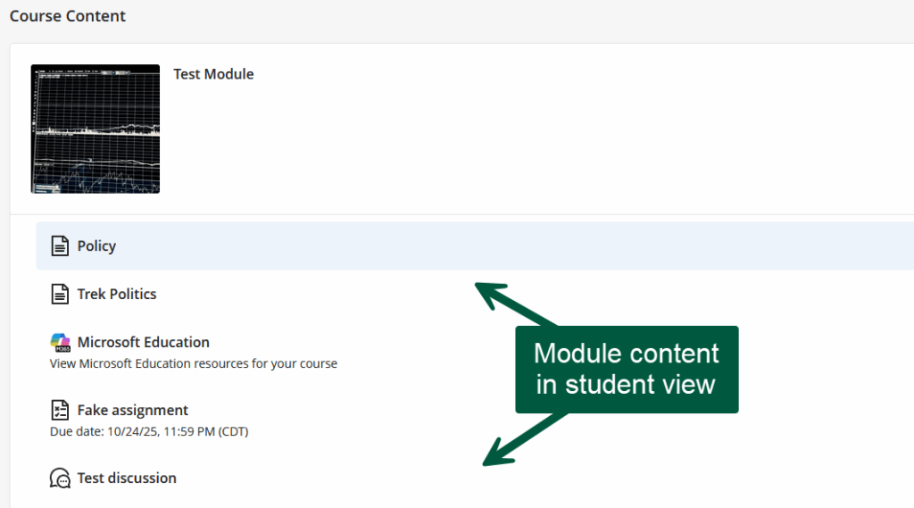 For instance, if you create a module, your students will see the set of items in it on the main content page.