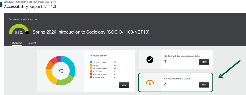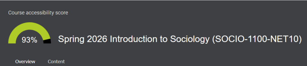 For those of you keeping track at home, fixing my low-scoring content increased my course accessibility score from 75% to 89%.