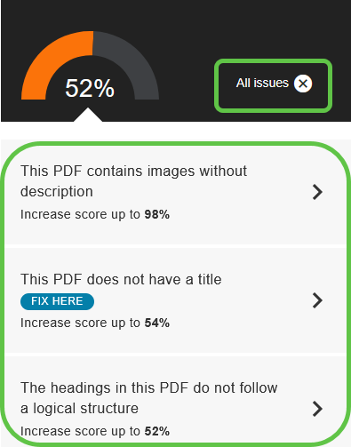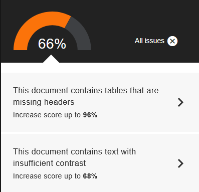 In this post, let’s see what happens to that score once I fix my medium scoring issues. A quick overview tells me that the issues are different and that I may not be able to solve them in Ally. This means I may need to go back to my word processor, fix my problematic documents, and then re-upload the fixed version.